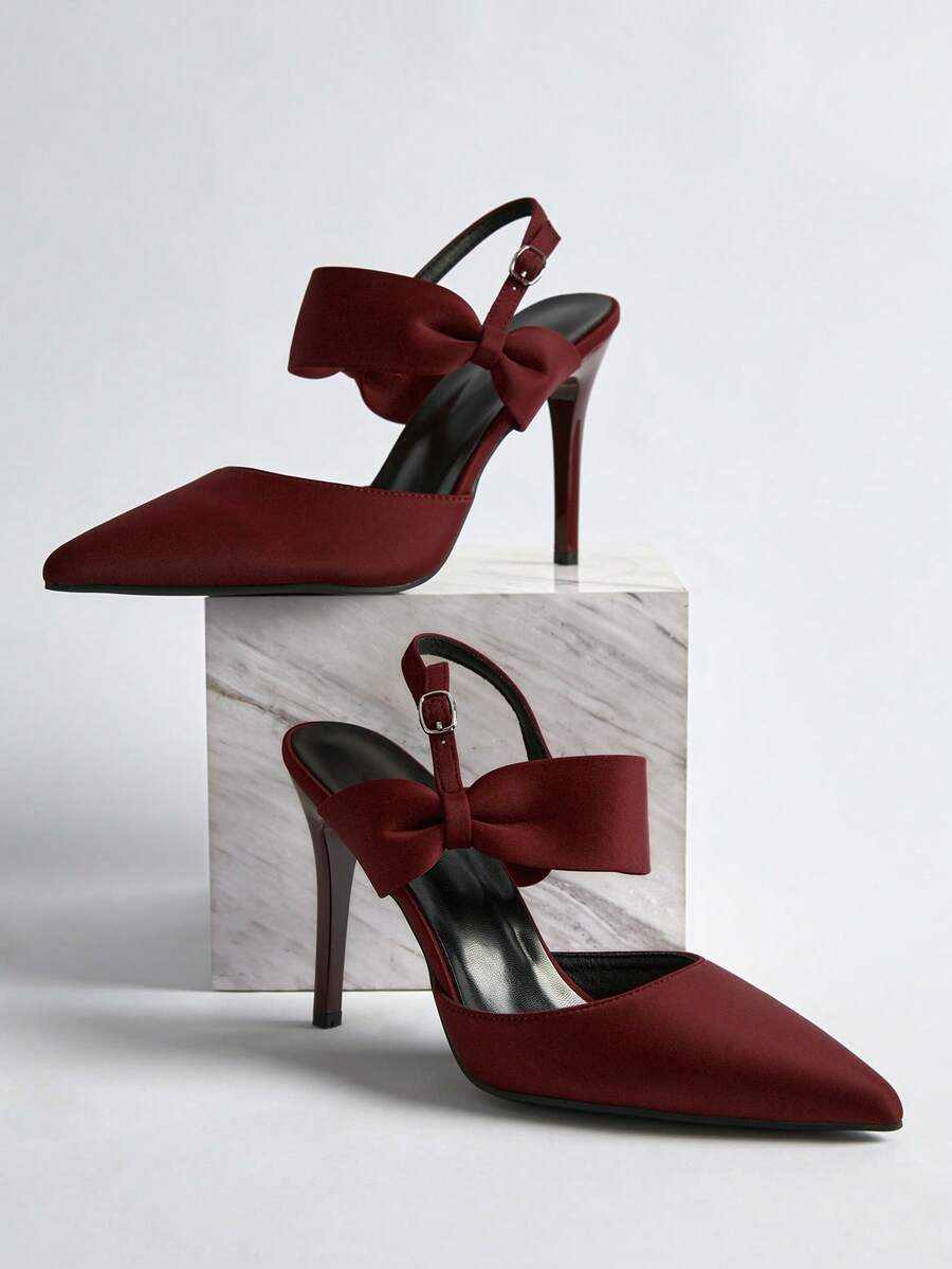 Women's New Burgundy Elegant Pointed Toe High Heels, Party First Choice, Spring/Summer/Autumn, 2-2.5 Inch High-Heel French Peep-Toe Sandals Winter Gifts