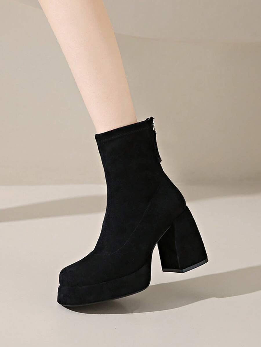 Women's Round Toe Platform Ankle Boots, Versatile Thick Sole Fashion Chunky Heel Short Boots With Back Zipper, Autumn/Winter