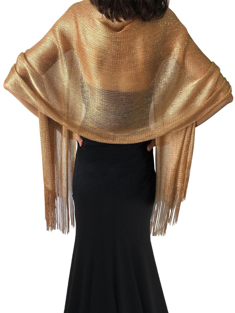 Women's Shiny Tassel Shawl Scarf, Suitable For Bride Wedding Party Evening Dress And Special Occasions, Elegant Lightweight Breathable Tassel Scarf