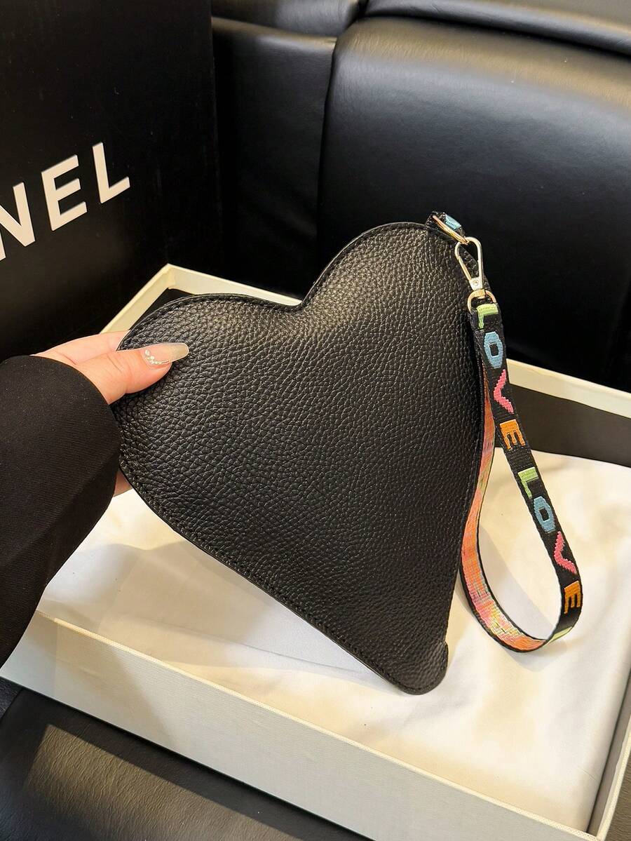 Women's Stylish Personalized Heart Shape Solid Color PU Leather Mini Clutch Bag, Elegant Coin Purse, Vintage Daily Work Commuting Wallet Handbag