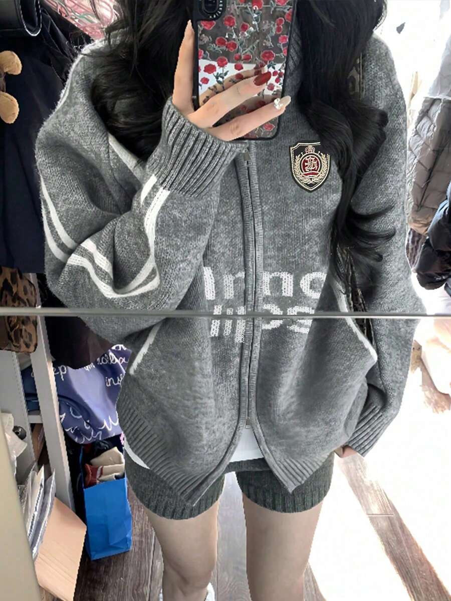 • Women's Turndown Collar Zip-Up Cardigan Sweater, New Arrival, Korean Style, Loose Fit, Knitted Jacket, Autumn