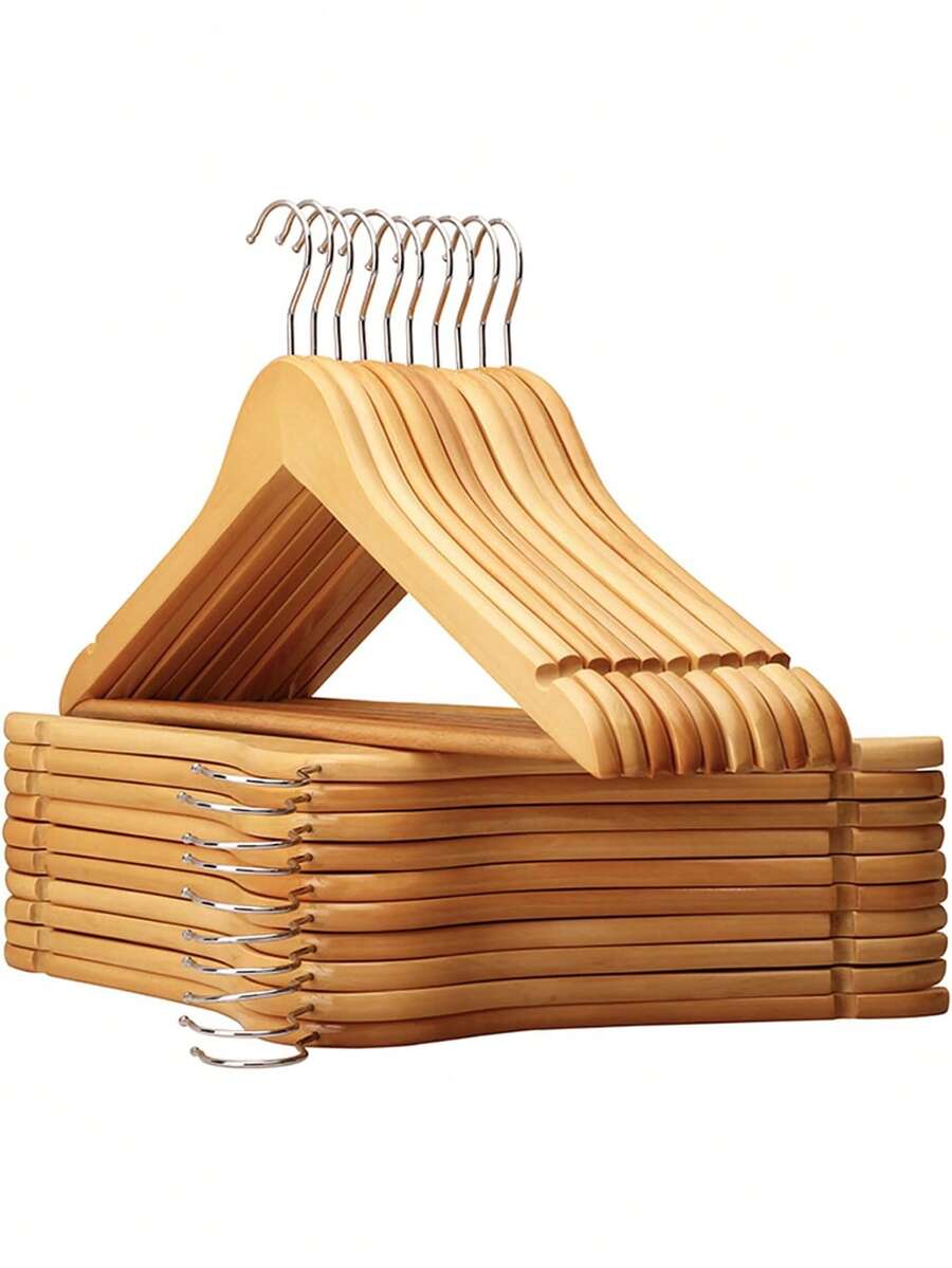 Wooden Clothes Hanger, Adult Size, With Non-Slip Grooves And 360° Rotating Hook, Suitable For Shirts, Jackets, Sweaters, Pants And Other Garments, Natural Wood Color