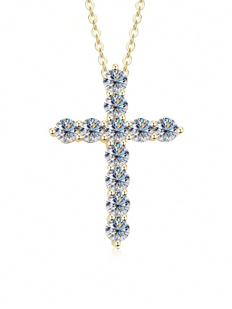 XUJIA 1PC Cross Pendant Necklace For Women Men 925 Sterling Silver Moissanite Necklace Fashion Pendant Necklace 3.5mm*6pcs Round Moissanite Cross Necklace Anniversary Party Birthday Jewelry Gifts