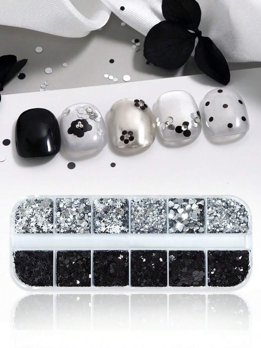 Y2K Tiny Star Nail Seqiuns Silvery Black Heart Manicure Charms Kawaii Korean Nails Art Accessories Valentines DIY Nail Decorations
