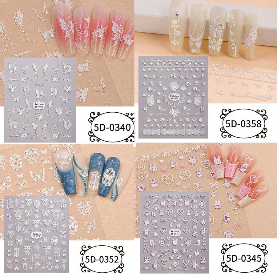Zhengxiang Dopamine Bow Nail Stickers, 5D Embossed Minimalist Versatile Cherry Cartoon Nail Art Decals