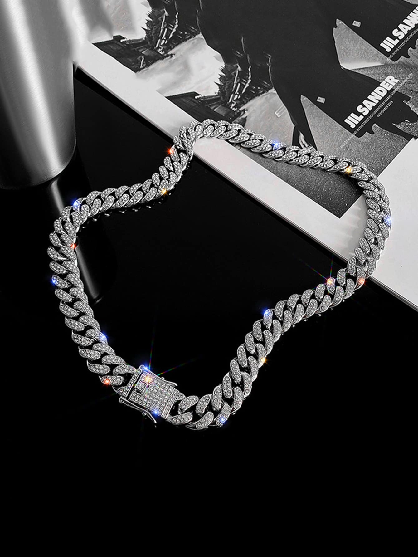 kuuioe 1pc European-American Hiphop Style Full Diamond Encrusted Chain Necklace/Hand Bracelet, 20-60CM