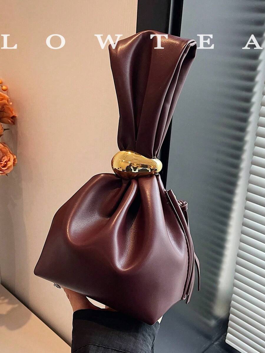 low tea 1pc Solid Color PU Leather Handbag, Burgundy Ancora Design, Women's Personalized Mini Cloud Pleated Bag With Metal Decor Zipper Closure, Suitable For Daily And Outdoor Use , New Year , Burgundy Bag