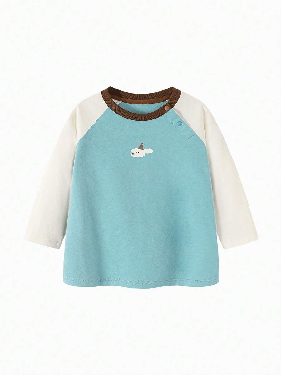 mini bala Baby Boy Contrast Raglan Sleeve Cartoon Print Top