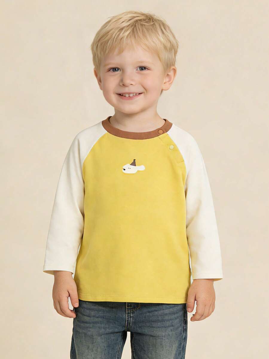 mini bala Baby Boy Contrast Raglan Sleeve Cartoon Print Top