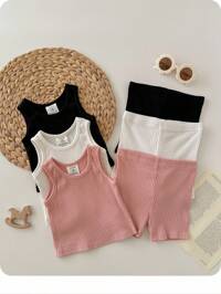 SHEIN Newborn Baby Girls' Elegant Cute White Pleated Pearl Sleeveless Bodysuit, Versatile For Summer