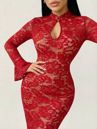SHEIN SXY CURVESHEIN SXY Plus Size Women's Valentine's Day Black Mesh Contrast Bodycon One Shoulder Dress,Suitable For Daily Wear, Date Night, Birthday, Bachelorette Party Outfit, Party, Prom, Couple Date, Elegant, Casual, Shopping, Street Wear, Outdoor, Flirty, Easy To Match And Looks Slim, Highlight Your Figure, Flatter Your Body,Formal Dresses For Women
