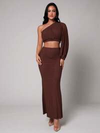 SilqueeSilquee Chocolate Color For Spring And Summer, Brown Maxi Skirt, Brown Two-Piece Suit, Backless Sexy Two-Piece Suit, Holiday Shirt, Beach Outfit, Beach Outfit, Elegant Sexy Long Skirt, Suitable For Beach Vacation, Daily Wear, Pool Party Two-Piece Suit, Holiday Outfit, Natural Party, Cabin Vacation, Suitable For Spring Vacation, Beach Vacation Two-Piece Suit, Double-Layer Fabric Non-See-Through Two-Piece Suit, Party Two-Piece Suit, Dating Two-Piece Suit, Women's Summer Two-Piece Suit,Swing Collar Suspenders,Set For Women