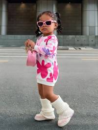 SHEIN Baby Girl Floral Print Long Sleeve Dress, Autumn/Winter